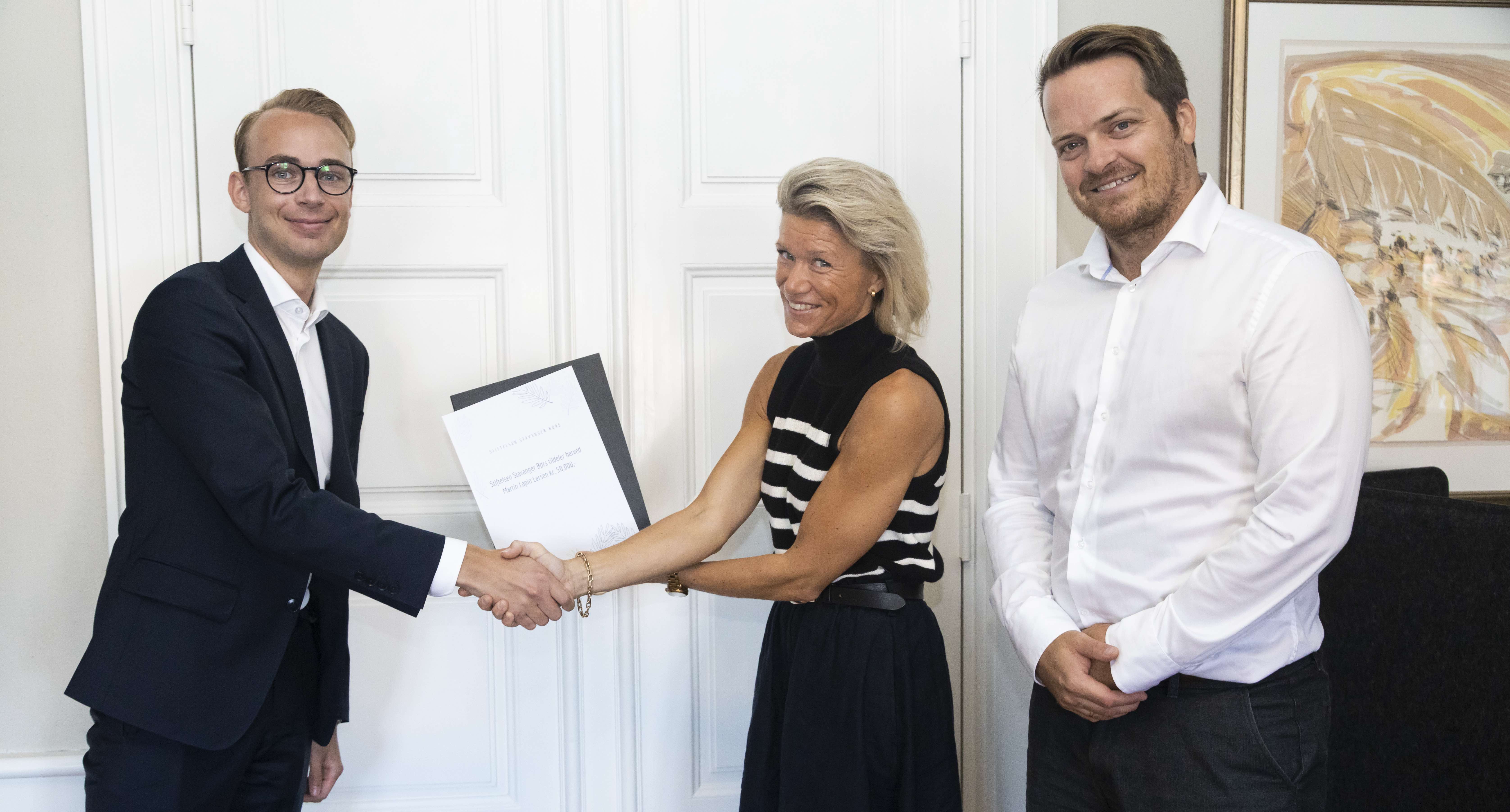 I tillegg fikk Abdullah Galal en forsinket overrekkelse. Han fikk stipendet i 2020, men var med på en koronaforsinket tildeling nå, sammen med «vinnerne» for inneværende år. Martin, Sander, Ole Andreas og Abdullah er i ferd med å skaffe seg blytung faglig ballast gjennom Master-programmer ved studiesteder som Cambridge, Warwick, Imperial College og Bayes Business School (tidligere Cass). Stipendmottakerne opplever tildelingen som et verdifullt økonomisk bidrag til gjennomføringen av kostbare studier. Når disse er fullendt, er håpet at finansekspertene vil finne det attraktivt å jobbe og bo i Stavanger-regionen. Det håper også juryleder Karen Thorsen Vatnamot.